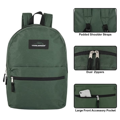 Trail maker Pre-Filled 17" Backpack & School Supply Kit - 20 Piece Back to School Supplies with Backpack (Green Pack)